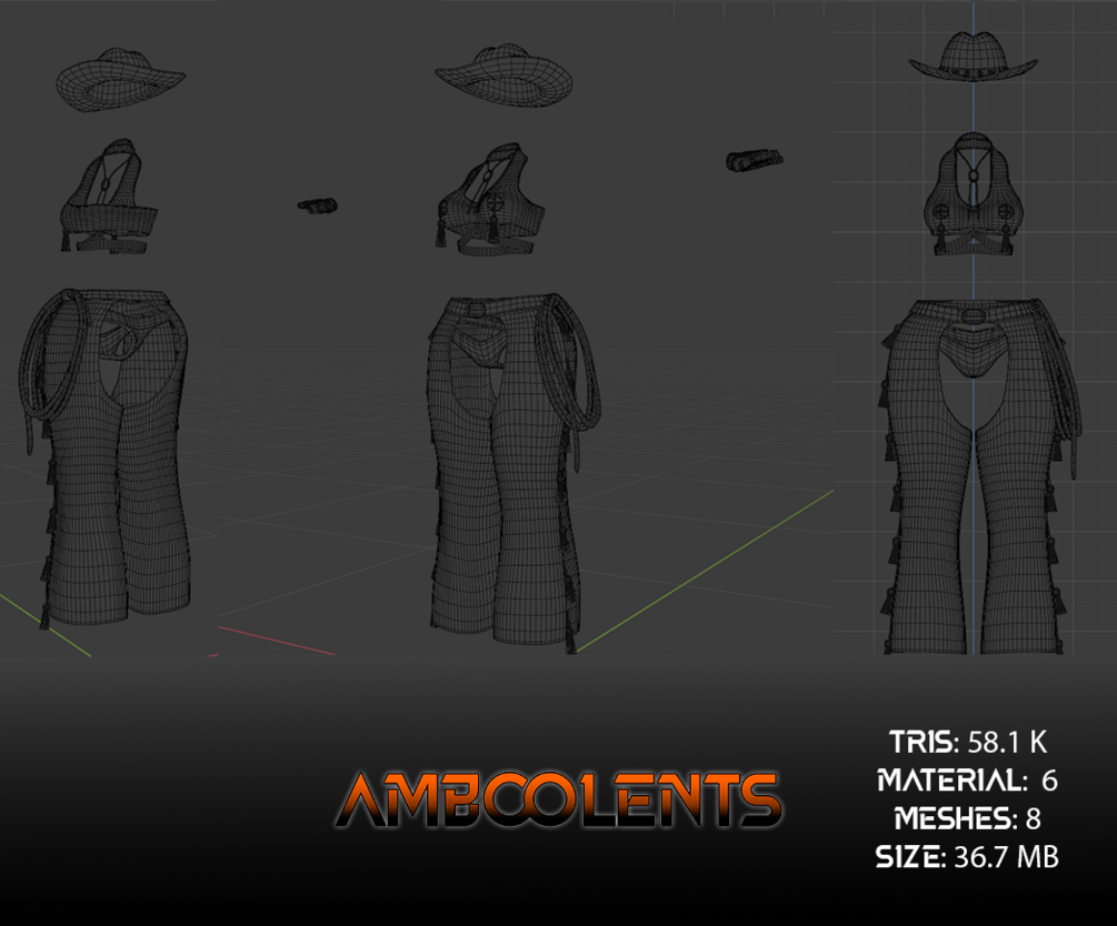 ♡ Rigged and weight painted to Pandaabears Female Base with custom bones for Lasso and Tassels.
